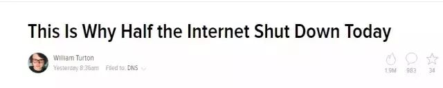 美国时间10月21日早晨,许多外国网友突然发现,Twitter、Tumblr等社交网站登不上了!随后他们又惊恐地发现,PayPal、BBC、华尔街日报、Xbox官网、CNN、HBO Now、星巴克、纽约时报、The Verge、金融时报……一大波网站不是卡顿就是登不上。 想想平时登不上QQ、微博时,我们有多焦虑,外国网友们就同样有多崩溃。