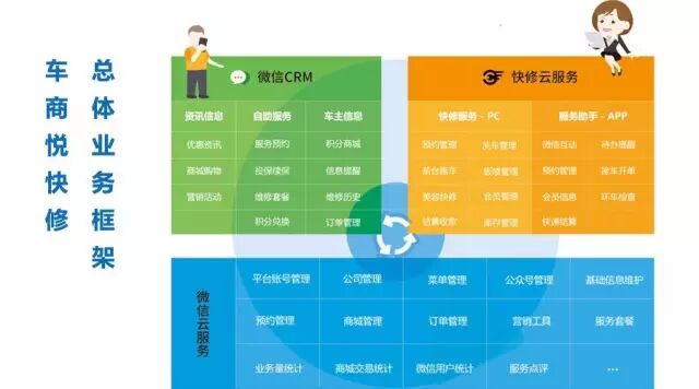 车商悦微信CRM,销售服务助手APP与ERP平台打通,实现信息共享,通过O2O应用,打造服务闭环,以微信应用为切入口,通过云计算、大数据技术,高效支持汽车经销集团的精准营销、客户管理、员工协作、决策支持等经营要素。