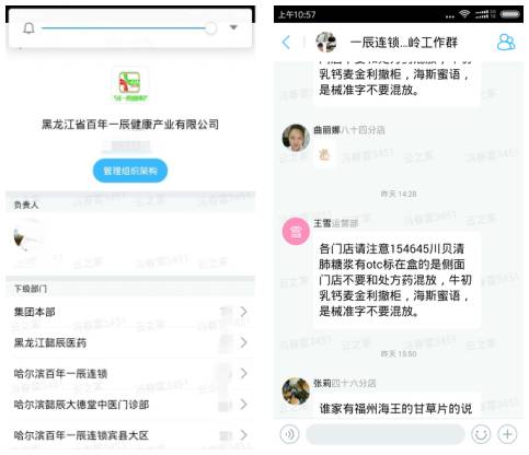 “云之家帮助百年一辰集团搭建移动工作平台,通讯录、移动签到、移动审批等功能提高了集团的办公、沟通和管理效率。”启用云之家半年多时间,黑龙江百年一辰集团质量及信息管理中心主任冯春雷如是说。据了解,百年一辰集团是一家集医药生产、销售、科研于一体的大型民营企业,旗下拥有20多家分公司,医药连锁店多达150余家。