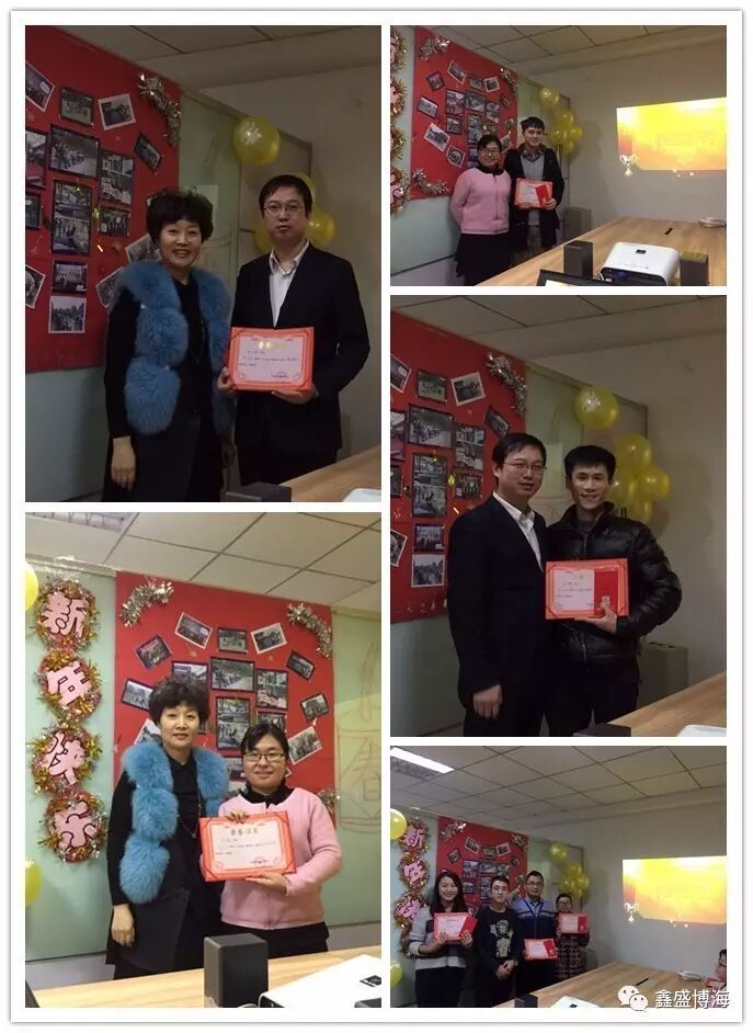年会现场,主持人首先公布了2016年度鑫盛博海先进评选结果,评出2016年度鑫盛博海“优秀经理人”一名、“最大贡献”一名、“实施明星”一名、“优秀员工”三名、“最佳新秀”一名等奖项,并由公司领导为获奖者们颁发了荣誉证书及奖金。