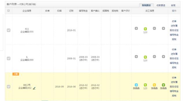 财税跟进:服务到了哪个进度,哪个员工在负责,一清二楚