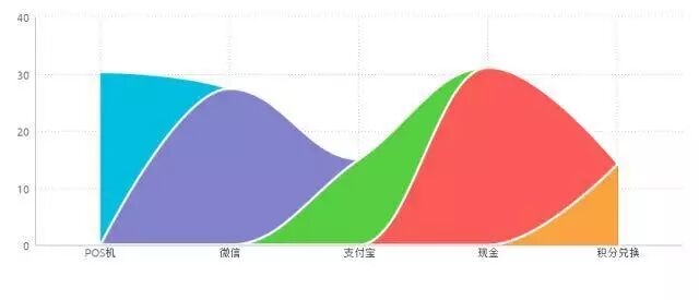 表示随时间而变化的利润的数据可以绘制在面积图中以强调总利润。延伸为:堆积面积图、百分比堆积面积图还可以显示部分与整体之间(或者几个数据变量之间)的关系。