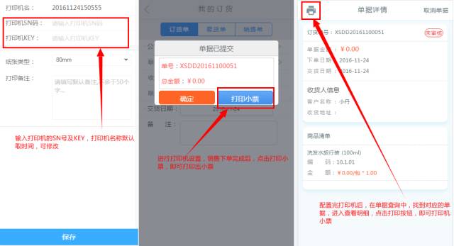 提供单据打印功能,支持飞鹅的wifi打印,还可以使用GPRS(移动数据流量)打印,在KIS专业版及商贸版的销售下单及单据查询这2个移动应用中使用。第一次使用,需要先进行打印机设置,输入对应打印机的SN号和KEY值。