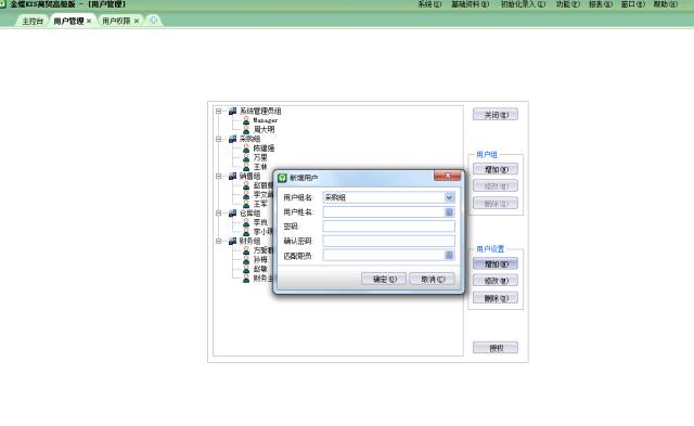 金蝶KIS商贸版,一方面通过用户的分组权限设置,每个用户只可以查看和操作自己业务职责范围内的数据,保证数据不会被随意更改;另一方面软件可以对客户、供应商、价格等信息进行权限设置,规定谁才有看到的权限。
